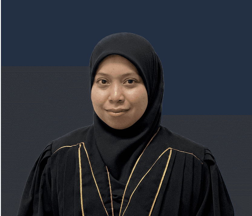 Graduated from Universiti Sultan Zainal Abidin (UniSZA) with a Bachelor of Laws (Honours) in 2024. She completed her pupillage under the supervision of Puan Rosmaizura @ Zainab bt Abdul Ghafar and was called to the Malaysian Bar on 11 September 2025.